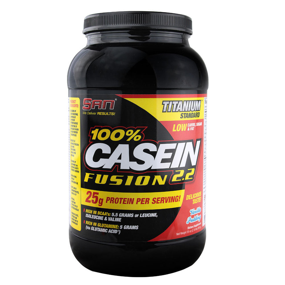 Американская лаборатория SAN представляет Вашему вниманию 100% Casein Fusion - продукт, который состоит из мицеллярного казеина и протеина молочной природы. Кроме этого состав продукта подкреплен 5,5 граммами аминокислот ВСАА и 5 граммами глютамина в каждой порции.