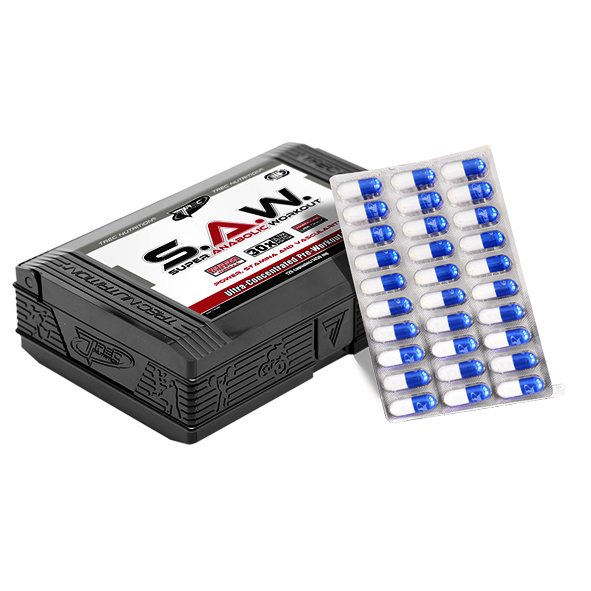S.A.W. (Super Anabolic Workout) - это уникальная предтренировочная формула, которая наполняет организм спортсмена силой и энергией для проведения полноценной качественной тренировки. Прием спортивной добавки приводит к увеличению силовых возможностей человека. Улучшает работоспособность. Благодаря спортивной добавке человек выполняет больше упражнений, что приводит к интенсивному росту мышечной массы. Обладает анаболическим эффектом.