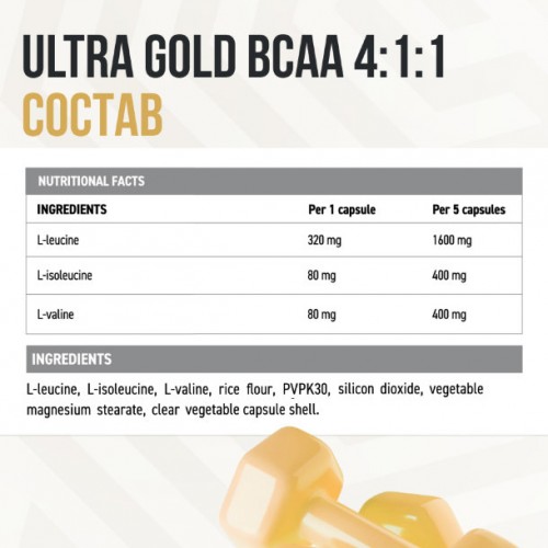 Ultra Gold BCAA 4:1:1 – это современное решение для тех, кто стремится к максимальной продуктивности, быстрому восстановлению и качественному мышечному росту.