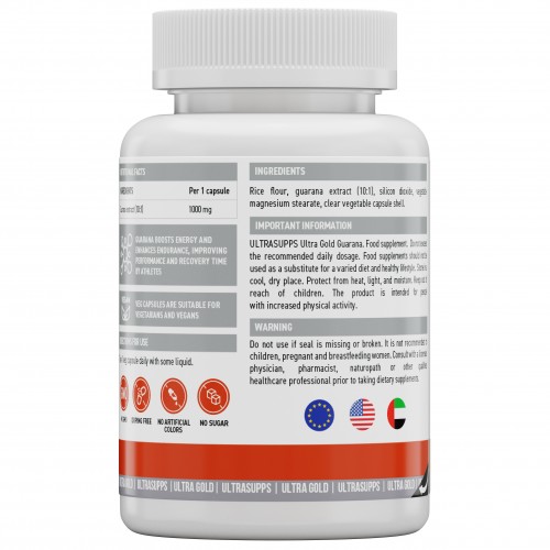 UltraSupps Ultra Gold Guarana Extract особенно полезен спортсменам, студентам, офисным работникам и всем, кто сталкивается с высокими нагрузками. Принимайте капсулы в первой половине дня или перед тренировкой, чтобы ощутить прилив сил и сохранить продуктивность.