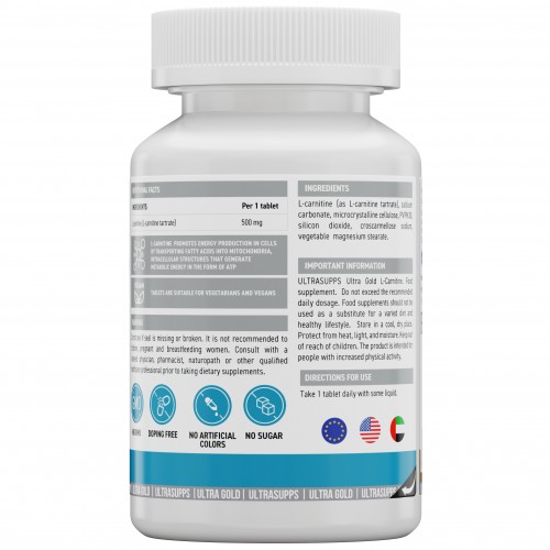 UltraSupps Ultra Gold L-Carnitine создан с использованием высококачественного L-карнитина тартрата, который отличается максимальной биодоступностью и эффективностью. Таблетированная форма обеспечивает удобство приема и точную дозировку.