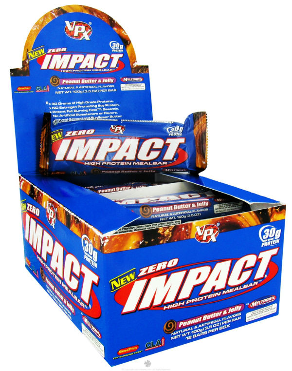 VPX Zero Impact Bar - компактный перекус в дороге или на мероприятии. Польза протеиновых батончиков от компании VPX основывается в первую очередь на рекордно минимальном содержании сахара в нем. Это протеиновый батончик, состав которого включает в себя природные ингредиенты и низкогликемические углеводы, которые не влияют на повышение сахара в крови. Натуральные жиры из орехов, семян, зерна и молочных белков способствуют насыщению организма полезными веществами, а 30 грамм высококачественных белков в каждой порции подкрепят атлета аминокислотами, полезными для мышечного роста.